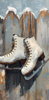 Runollinen talvimaisema: klassiset luistimet roikkuvat huomaamattomasti vanhan aidan päällä, lumen ja kylmän jälkiä ilmassa. Vaimennetut, pohjoismaiset sävyt ja pehmeä valaistus luovat rauhaa, nostalgiaa ja talven iloa. Täydellinen jäähallien, hiljaisten päivien ja pienten seikkailujen muistelemiseen. Motiivin on luonut Ohkimiko. Yksinkertaisella, ajattomalla ilmaisulla.