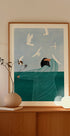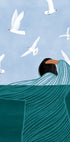 Tässä taideteoksessa näkyy mietteliäs hahmo raidallisissa vaatteissa lähellä merta. Lokit leijuvat taivaalla luoden rauhallisen rannikkomaiseman. Minimalistinen tyyli korostaa sellaisia teemoja kuin yksinäisyys ja luonto. Täydellinen meritaiteen ystäville.