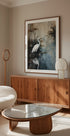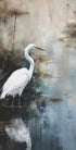 Tämä rauhallinen taideteos kuvaa valkohaikaraa peilimäisen puron varrella, jota ympäröi rehevä, sumun peittämä kasvillisuus. Rauhallinen kohtaus herättää rauhallisuuden ja luonnon kauneuden tunteen korostaen villieläinten eleganssia sen luonnollisessa elinympäristössä.
