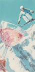 Andreas Magnussonin leikkisä, surrealistinen juliste: Vilaus alppihiihtoa, jossa vaaleanpunainen samppanja kuohuu lumisia vuorenhuippuja vasten ja hiihtolatu kiertelee läpi kimaltelevan talvimaiseman. Pastellisävyt ja hienot yksityiskohdat luovat unenomaisen tunnelman, joka tasapainottaa seikkailua, huumoria ja eleganssia. Täydellinen katseenvangitsija olohuoneeseen tai mökkiin.