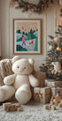 Snowy Sledge Walk by Bea Müller captures a cozy winter ramble through a frosted forest: bundled figures tug a bright sled past twinkling pines, soft snowfall and dusky skies. Playful color blocks and gentle textures evoke festive warmth, childhood wonder, and the hush of a snowy holiday stroll. A charming scene to spark holiday cheer.