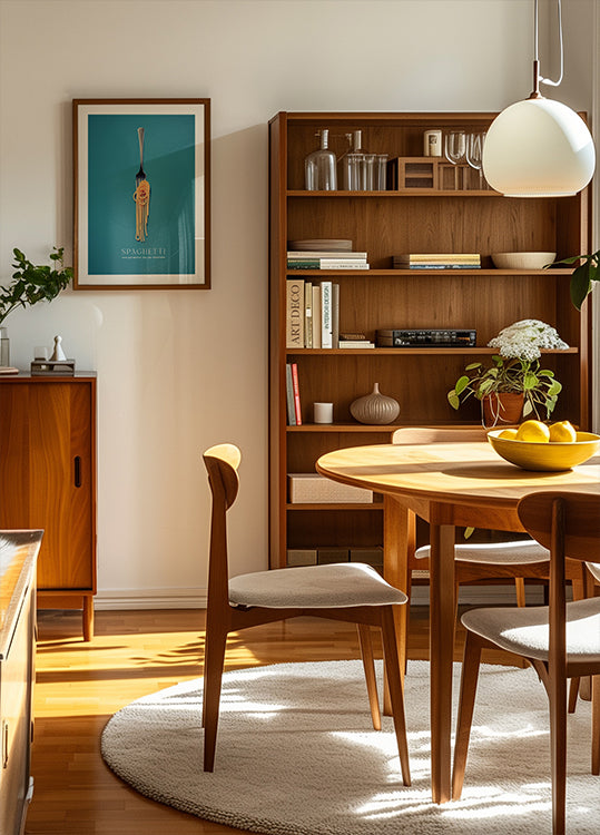 Valkoinen ruoka: Motiivi on painettu valkoisella, mattareunuksella kuvion ympärillä. Tämä antaa puhtaan ja tyylikkään ilmeen, joka korostaa aihetta ja antaa galleriahenkisen ilmeen.