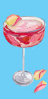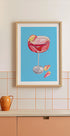 Tämä eloisa taideteos kuvaa tyyliteltyä cocktailia lasissa, koristeltu vaaleanpunaisilla ja keltaisilla terälehdillä kirkkaan sinistä taustaa vasten. Maalauksen sulavat siveltimenvedot luovat modernin ja energisen ilmaisun, joka sopii täydellisesti juomiin tai nykytaiteeseen liittyviin teemoihin.