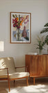 Et livfuldt stilleben af Janel Bragg: en enkel mason jar fyldt med frodige blomster i rosa og orange toner, der springer mod en lys baggrund. De friske penselstrøg og dristige farver skaber en varm, glad stemning og giver dit rum et moderne, botanisk udtryk med poetisk hverdagscharm. Perfekt som farverigt fokuspunkt i stue, køkken eller entré.