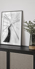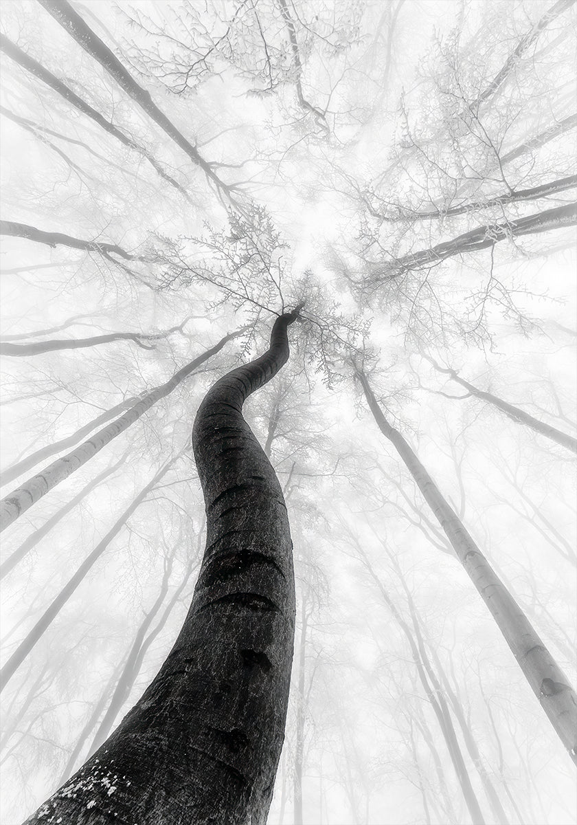 Valokuvaaja Tom Pavlasekin vangittama rauhallinen talvihetki: hoikat pyökkipuut seisovat lumessa sumun ja pakkasen peitossa. Pehmeät harmaan ja valkoiset sävyt luovat syvyyttä ja rauhallisuutta, kun taas toistuvat jännitykset piirtävät maisemaan graafisia viivoja. Minimalistinen, pohjoismainen tunnelma kotiin. Täydellinen huoneisiin, jotka etsivät selkeyttä, hiljaisuutta ja luontoa.