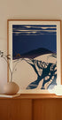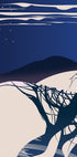 Hiljainen talviyö avautuu: hoikat, paljaat puut tumma kuvastoa vasten syvää, tähtitaivasta, kun taas suuri kuu nousee kaukaisten vuorten yläpuolelle. Japanilaistyylinen minimalismi kohtaa unenomaisen tunnelman motiivissa, joka tasapainottaa rauhallisuutta, mysteeriä ja kosmista runoutta – täydellinen meditatiivisena katseenvangitsijana.