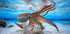 Henkeäsalpaava vedenalainen valokuva mustekalasta, joka liikkuu sulavasti merenpohjan poikki. Kierrettyjen käsivarsien, kuviollisen ihon ja yläpuolella olevan kirkkaan sinisen veden ansiosta tämä taideteos vangitsee meren elämän kauneuden ja mysteerin. Näyttävä taideteos puutarhan ja modernin sisustuksen ystäville.
