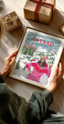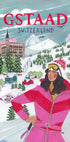 Hyppää Gstaadin talviseen glamouriin Caroline Bonne Müllerin tyylikkäällä julisteella: itsevarma nainen kirkkaan vaaleanpunaisessa monopuvussa ja peililaseissa pohtii lumipölyisiä kuusia ja mökkien kattoja Alppien hehkuessa matalassa talviauringossa. Vintage-vaikutteinen typografia antaa kohtaukselle tyylikkään, ajattoman matkailmeen. Täydellinen haaveilleen rinteistä, mäntyistä ja after-skistä.