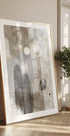 Moderni, abstrakti aihe, jossa orgaaniset kaaret ja graafiset linjat kiertyvät tyylikkääksi kierteeksi. Pehmeiden maansävyjen kerrokset kohtaavat syvän sinivihreät sävyt, jotka rikkovat kirkkaat kohokohdat. Hienovaraiset tekstuurit ja siveltimen vedot luovat rauhallisen liikkeen – tyylikäs katseenvangitsija pohjoismaisiin, minimalistisiin tiloihin. Täydellinen sellaisenaan tai osana gallerian seinää.