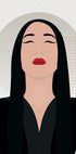 Näyttävä muotokuva geishasta, jolla on kiiltävät mustat hiukset. Se on ikuistettu kauniissa asennossa silmät kiinni ja rohkeat punaiset huulet. Minimalistinen tyyli ja puhtaat linjat huokuvat eleganssia ja voimaa, joten se sopii täydellisesti japanilaiseen, kulttuuriseen tai moderniin sisustukseen.