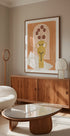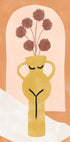 Tyylitelty maljakko, joka muistuttaa naismuotoista julistetta
