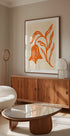 Tyylitelty oranssi tulppaani ja lehdet -juliste