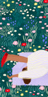 Hupaisa ja iloinen esimerkki naisesta, joka makaa niityllä täynnä värikkäitä kukkia. Elävillä väreillä, leikkisillä yksityiskohdilla ja rentoutumisen tunteella tämä taideteos vangitsee mindfulnessin, kesän ja unelmoinnin kauneuden luonnossa.