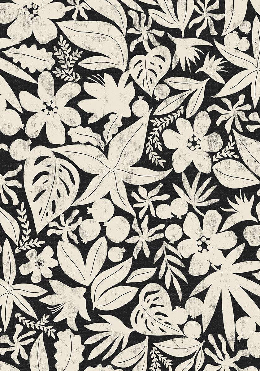 Cozy by Dana Ďuričeková yhdistää modernin minimalismin ja luonnon runouden: käsin piirretty, mustavalkoinen aihe graafisilla lehtien, kukkien ja hedelmien siluetteilla. Voimakkaat kontrastit ja hienot tekstuurit luovat rauhallisuutta ja läsnäoloa, jotka sopivat täydellisesti niin pohjoismaisiin, trooppisiin kuin taiteellisiin tiloihin. Tyylikäs ilme eteiseen, olohuoneeseen tai toimistoon.