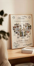 Romanttinen ja minimalistinen hääkollaasi, joka kokoaa kauneimmat hetkesi puhtaaseen galleriaan. Pehmeä neutraali tausta, tyylikäs typografia ja käsin piirretyt hääkuvakkeet luovat ajattoman ilmeen. Mukautettu nimillä, päivämäärällä ja lyhyellä tekstillä - ihanteellinen häälahjaksi, vuosipäiväyllätykseksi tai rakastavaksi muistoksi kotiin.