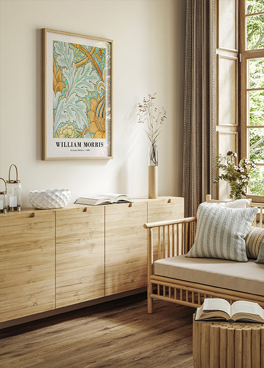 William Morrisin suunnittelema kirkas ja koristeellinen kuosi. St James -kuosissa (1881) on elegantteja akantuslehtiä, tyyliteltyjä kukkia ja pehmeitä mintunvihreän, okran ja vaaleansinisen sävyisiä viivoja. Erinomainen esimerkki Morrisin kyvystä kääntää luonnon kauneus harmoniseksi muotoiluksi.