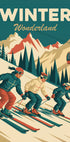 Andreas Magnussonin Winter Wonderland 2 vangitsee retromatkajulisteen ajattoman viehätyksen: lumiset Alppien huiput, syvät varjot kylmässä sinisessä ja tuoreet hiihtoladut halki hiljaisen laakson. Tunnelmallinen talviaihe, joka herättää kodissa seikkailun, nostalgiaa ja viihtyisyyttä. Täydellinen katseenvangitsija olohuoneeseen, eteiseen tai mökkiin.